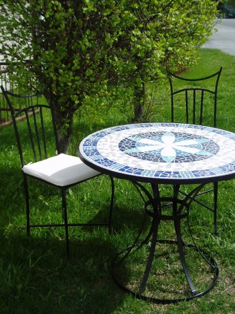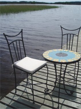 Pöytään sopivat rautatuolit. Istuintyynyn paksuus 3 cm tai 5 cm. Valmistamme tyynyn myös asiakkaan omasta kankaasta.